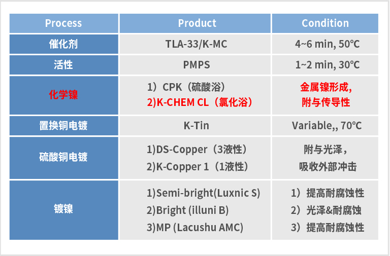P.O.P 工艺流程 化学镀镍(氯化镍基) K CHEM CL[M,A,B]无电镍沉积理念:K-Chem CL※ 确保形成良好的粘附力和稳定性。※ 防止与镀架的接触点烧焦。※ 自动化流程经过优化,提升经济可行性。※ 可根据补充液的浓度确定最佳换液量。Initial Reaction TestKPM POP ProcessStable Deposit rate vs EDS vs SEM . 목록으로