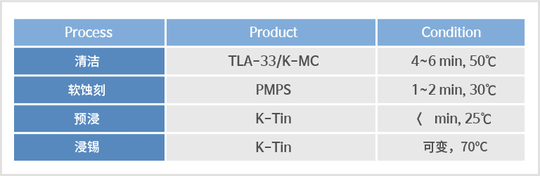 无电镀锡工艺流程 Pre-dip K-TIN[M,A,B]对比情况:表面粗糙度(25 ℃,1 分钟)※ 形成均匀的表面。※ 安全的溶液使用寿命※ 提供出色的可焊性。※ 适用于垂直和水平工件。Immersion Tin ProceessEffect of Dep. Rate vs SEMK-Tin DOE Test 목록으로